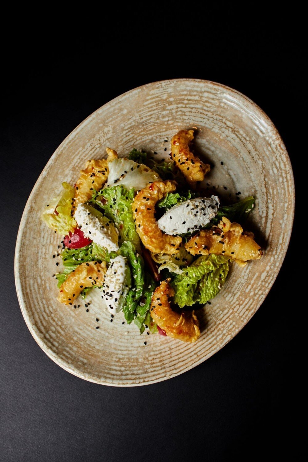 Салат с креветками в темпуре