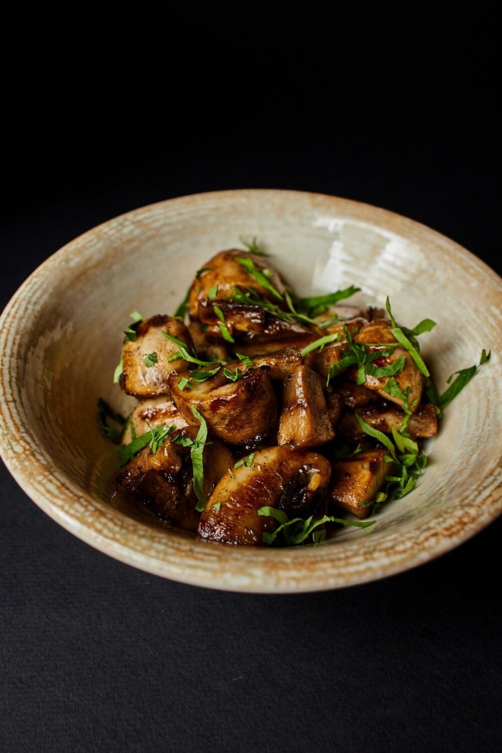 Маринованые в ярких специях шампиньоны, обжаренные в хоспере.